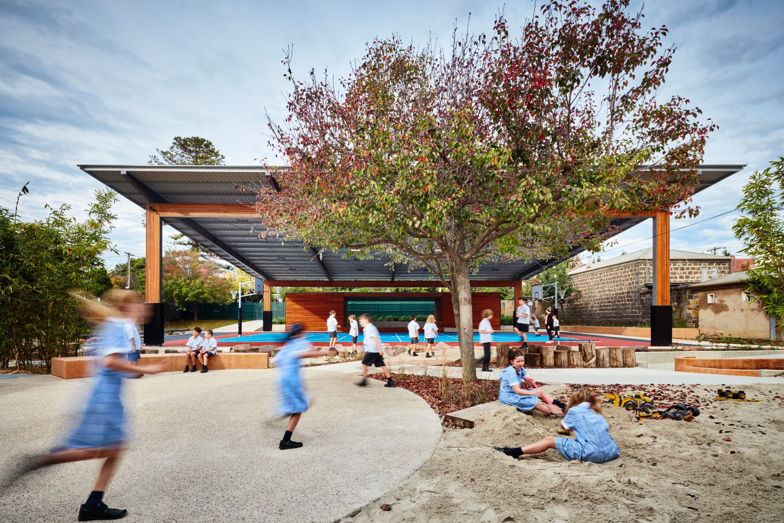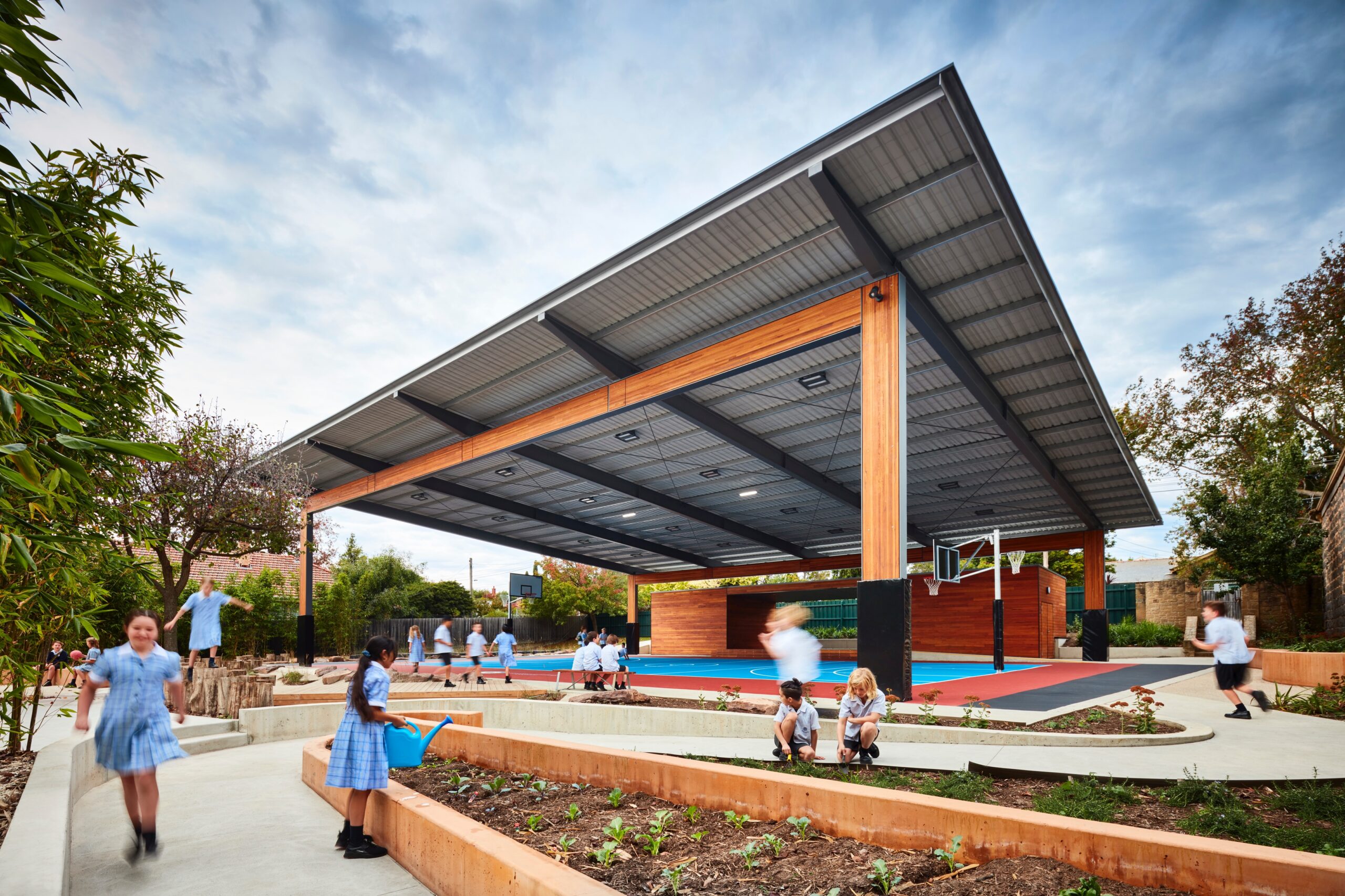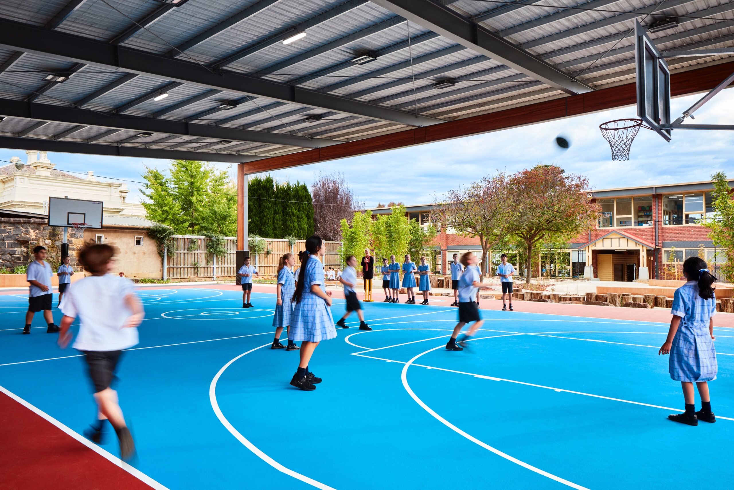 Construction of new Basketball court, covered structure, store rooms, stage, external stair, ramp, external works and landscaping and services.